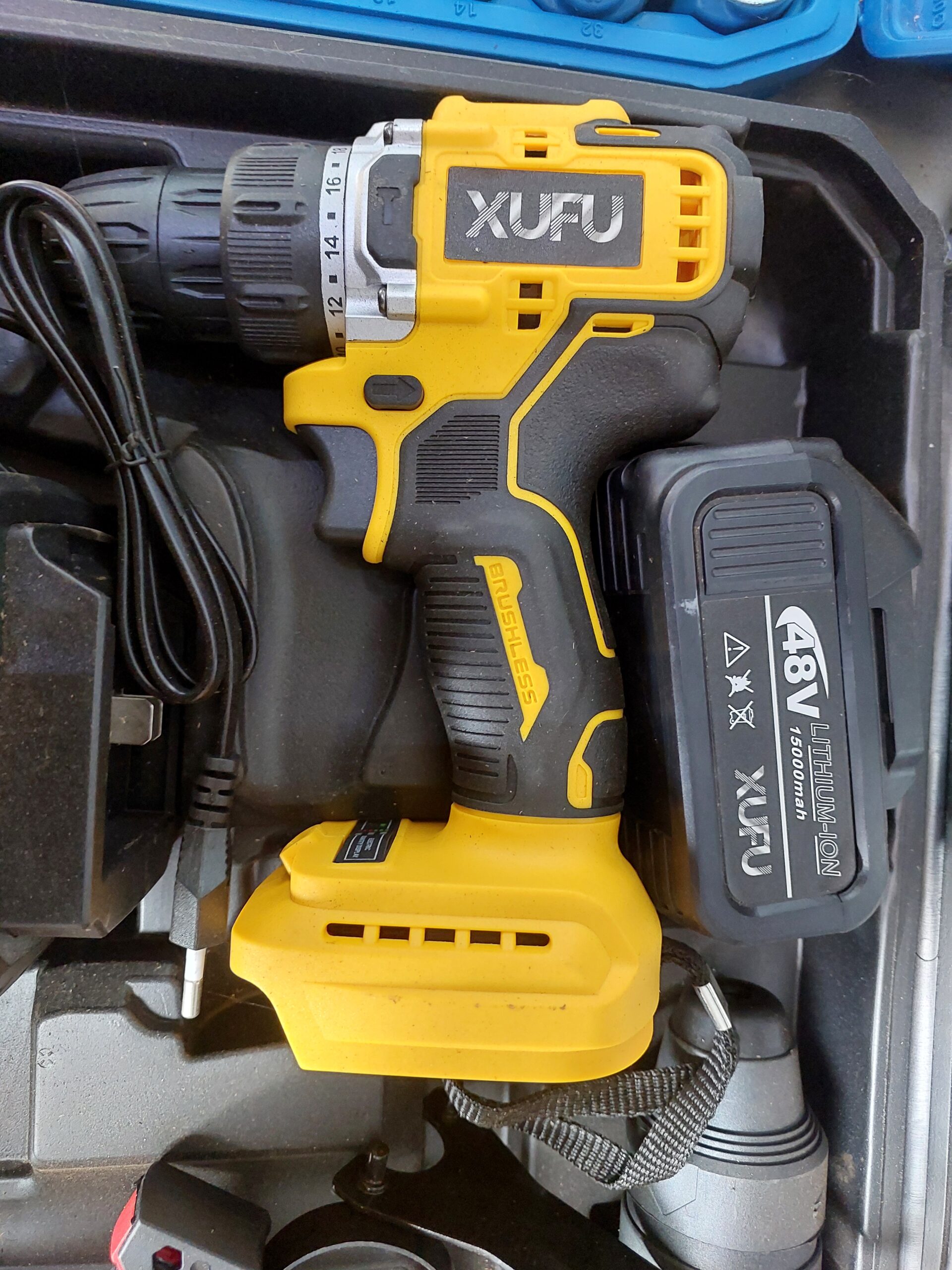 x1 Drill, with multiple speed settings and adjustable clutch for different torque levels, 10mm chuck.